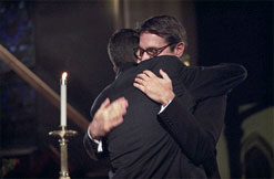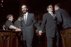 For Edward, who grew up as an altar boy, and Vincent, who was baptized at Old St. Patrick’s Cathedral in Little Italy and who attends Sunday Mass regularly, getting married outside the Catholic tradition is not an option. The couple books St. Peter’s Episcopal Church in Manhattan, converts it to suit a Catholic mass and invites Rev. Raymond Lefebvre, a gay Catholic priest, to perform the ceremony.